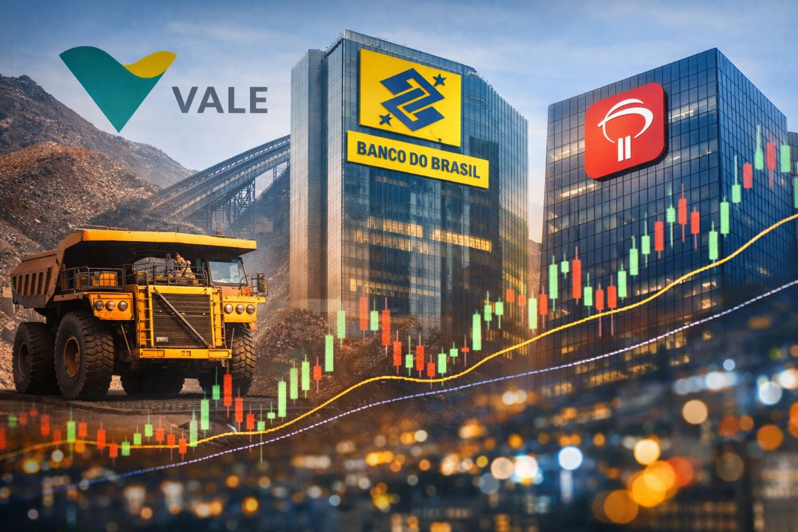 VALE (VALE3), do setor de mineração, e Banco do Brasil (BBAS3) e Bradesco (BBDC4), do setor bancário, entraram na semana com um ponto em comum: depois do impulso recente, o mercado passou a alternar avanço e pausa.